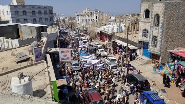 تعز..مسيرة حاشدة في التربة للمطالبة برفع المعسكرات والمسلحين