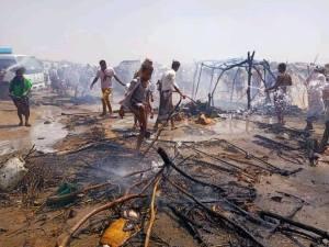 القوات المشتركة تخمد حريقاً شب في مخيم للنازحين بالخوخة