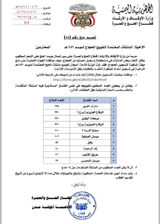 الأوقاف تمنح وكالات التفويج مهلة إضافية لتسجيل 2091 حاجاً