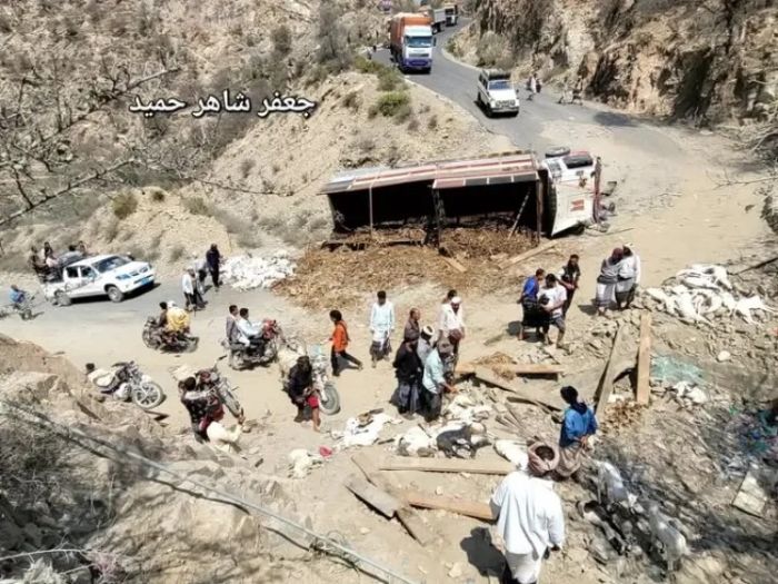 لحج | نفوق أكثر من 80 رأسًا من الماعز إثر انقلاب شاحنة محملة بها