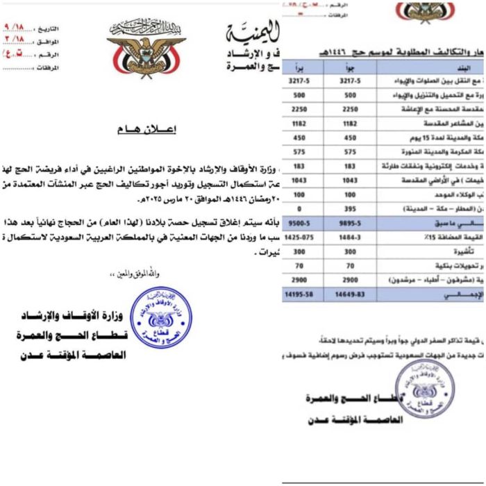 الأوقاف تهيب بالمسجلين لدى وكالات التفويج سرعة استكمال إجراءات تسديد تكاليف الحج