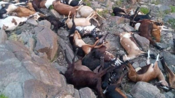نفوق عشرات المواشي يصاعقة رعدية في ريف تعز