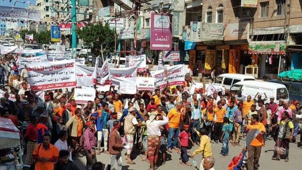 تعز | وقفة احتجاجية لعمال النظافة للمطالبة بتحسين أوضاعهم