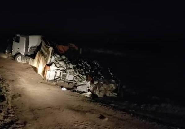 لحج.. انقلاب شاحنة لنقل البضائع على طريق مديرية القبيطة