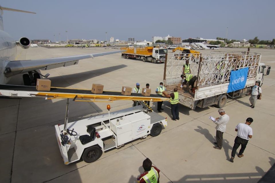 وصول شحنة مساعدات طبية من اليونيسيف إلى مطار عدن