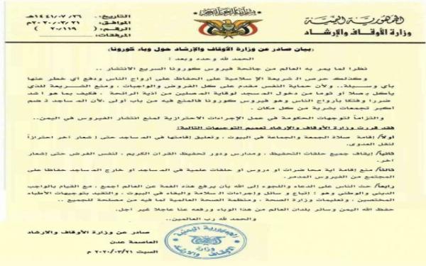 وزارة الاوقاف في عدن تعلق إقامة صلاة الجمعة والجماعة مؤقتا