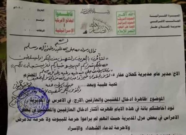 تعميم حوثي بشأن منع عزف الأورج والأغاني في الأعراس