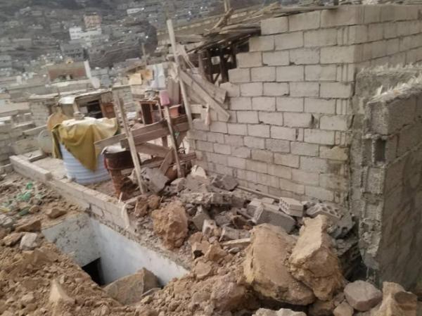 انهيار صخري في كريتر يتسبب باضرار في منازل المواطنين