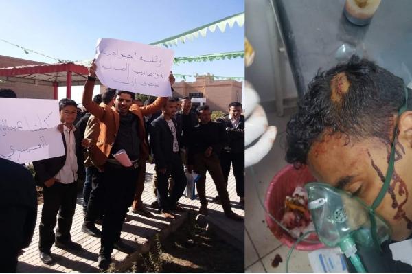 وقفة احتجاجية لطلاب جامعة ذمار لضبط معتدين على أحد زملائهم