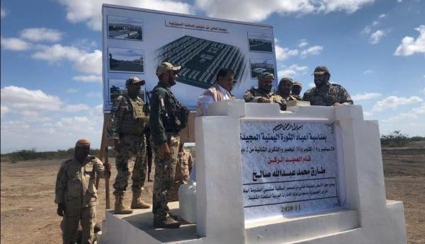 قائد المقاومة الوطنية يضع حجر أساس بناء مدينة 2 ديسمبر السكنية بالمخا