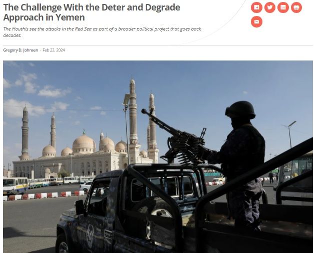 Yemen expert warn “the current U.S. approach of deter and degrade the Houthi rebels is unlikely to succeed.”