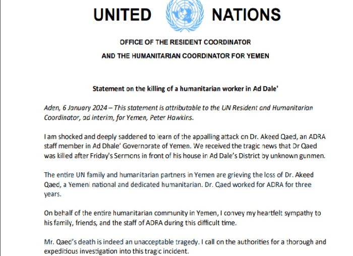 Anger at killing of a UN humanitarian worker in Ad Dale
