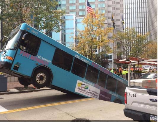 حفرة "مفاجئة" تبتلع حافلة أثناء سيرها
