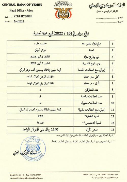 البنك المركزي يعلن نتائج مزاد جديد لبيع الدولار الأمريكي