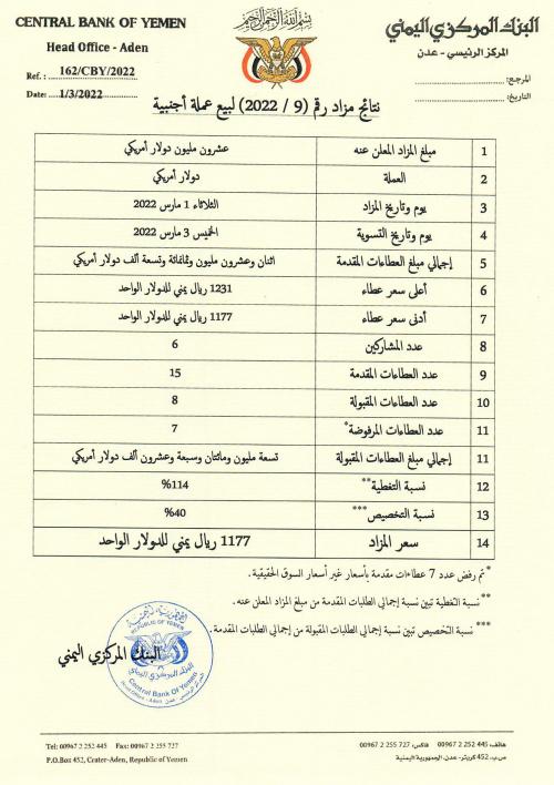 البنك المركزي يعلن نتائج مزاد جديد وسط انهيار للعملة الوطنية