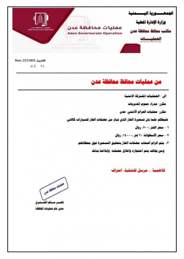 استكمال خطة تنظيم تسويق الغاز المنزلي في عدن