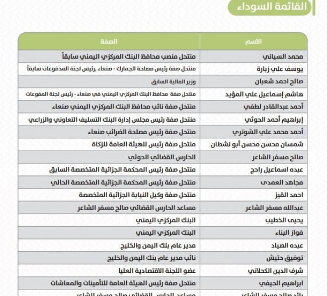 الإعلان عن قائمة سوداء بأسماء 30 مسؤولاً حوثياً في مجال القطاع المصرفي والمالي