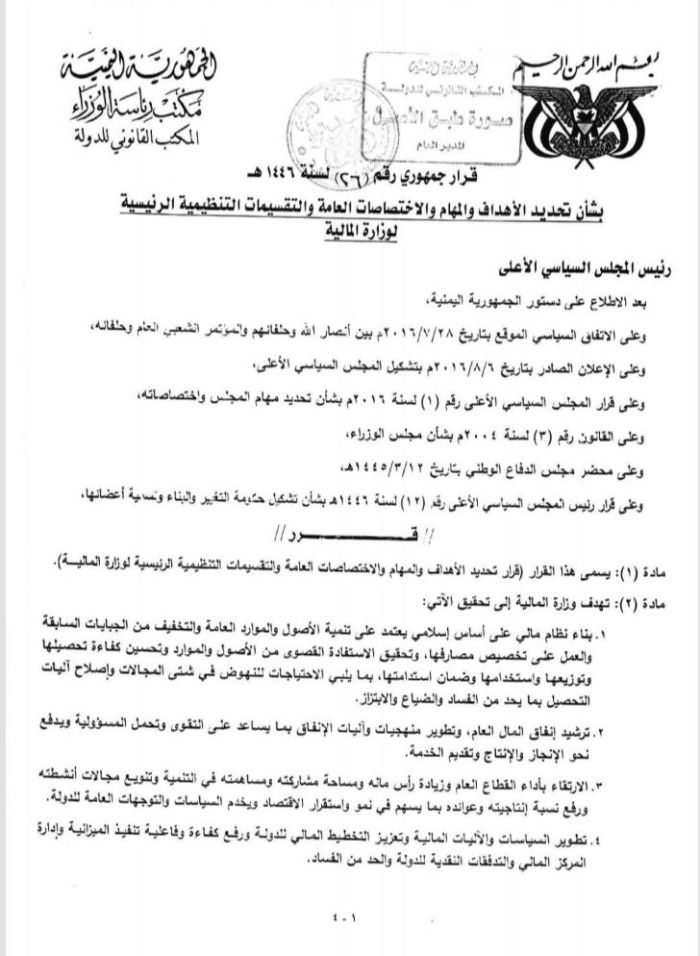 قرار حوثي يلغي اللوائح المنظمة للسياسية المالية في وزارة المالية