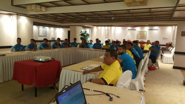 أقام الجهاز الفني لمنتخبنا الوطني الأول لكرة القدم محاضرة نظرية تم فيها مشاهدة المباراة الأولى مع المنتخب السنغافوري والتي انتهت بالتعادل الايجابي بهدفين لمثلهما