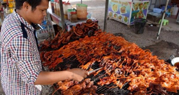 إبان حكم الخمير الحمر (1975-1979)، كان الناس يأكلون الجرذان والضفادع وحشرات أخرى من شدة الفقر. وأصبحت هذه الوجبات رائجة مجددا اليوم نظرا لثمنها الرخيص.