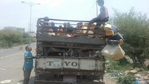 وقالت مصادر محلية أن مليشيات الحشد الإخواني التابعة لحزب الاصلاح هجرت التي اجتاحت المنطقة وتحصنت بين المدنيين هجرت النازحين بالقوة من المنطقة.