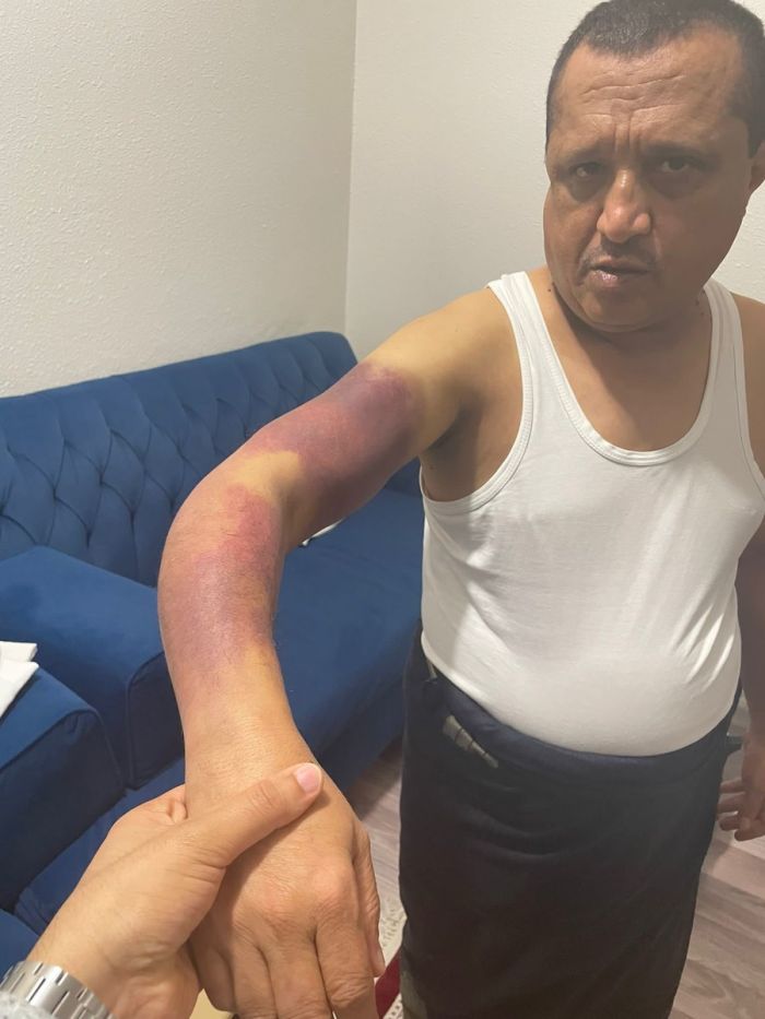 Al-Samadi said the attack caused his hands to swell and become red as a result of blood clots and that he was having difficulty moving his hands and legs.