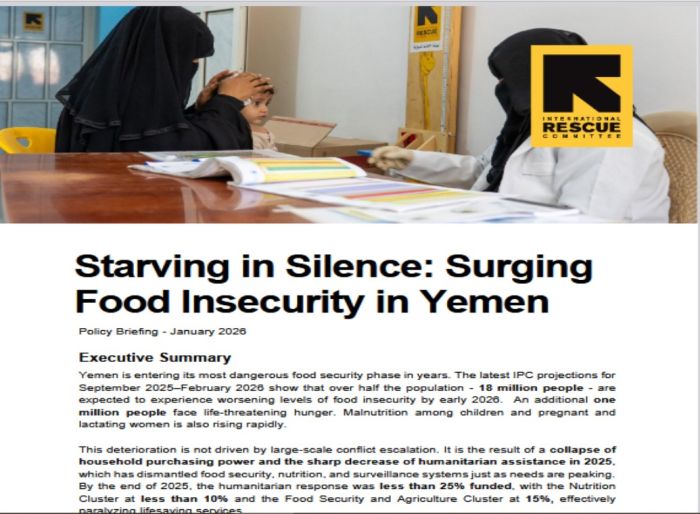 By the end of 2025, the humanitarian response in Yemen was less than 25% funded, with the Nutrition Cluster at less than 10% and the Food Security and Agriculture Cluster at 15%, effectively paralyzing lifesaving services, according to a recent analysis published by the International Rescue Committee (IRC).